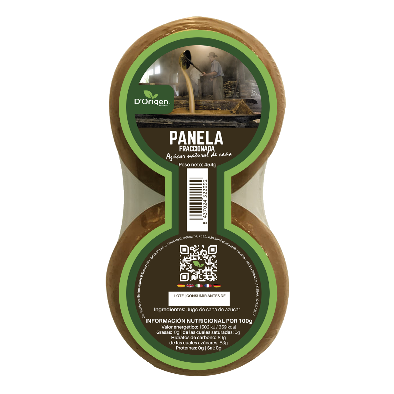 PANELA FRACCIONADA D’ORIGEN 454g Cj. x 24 Uds.